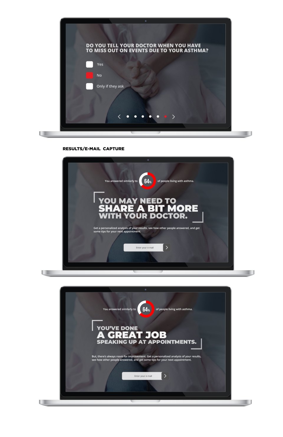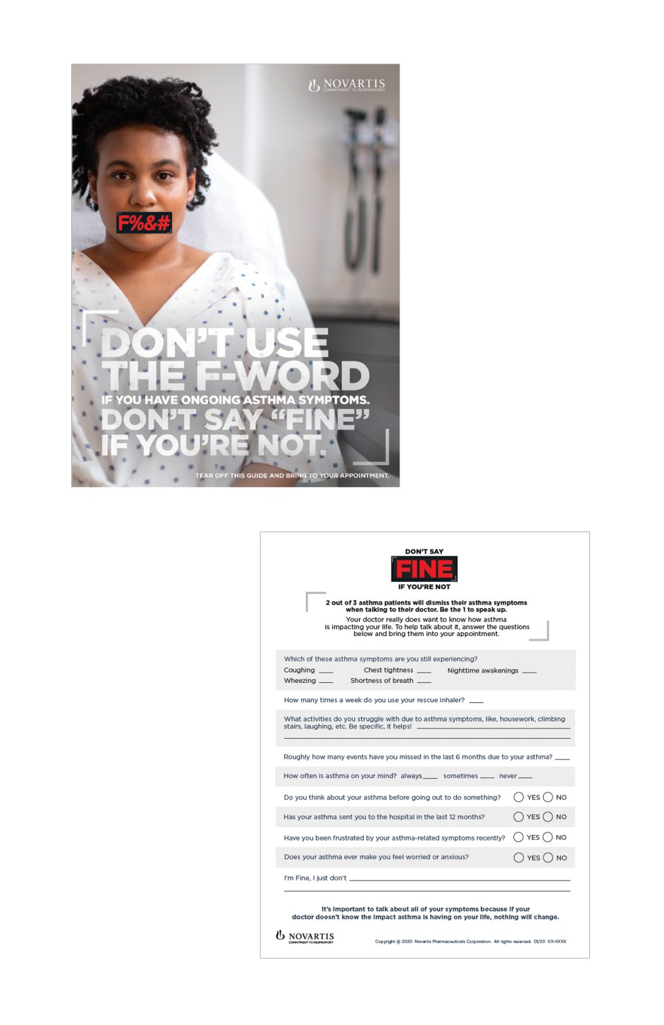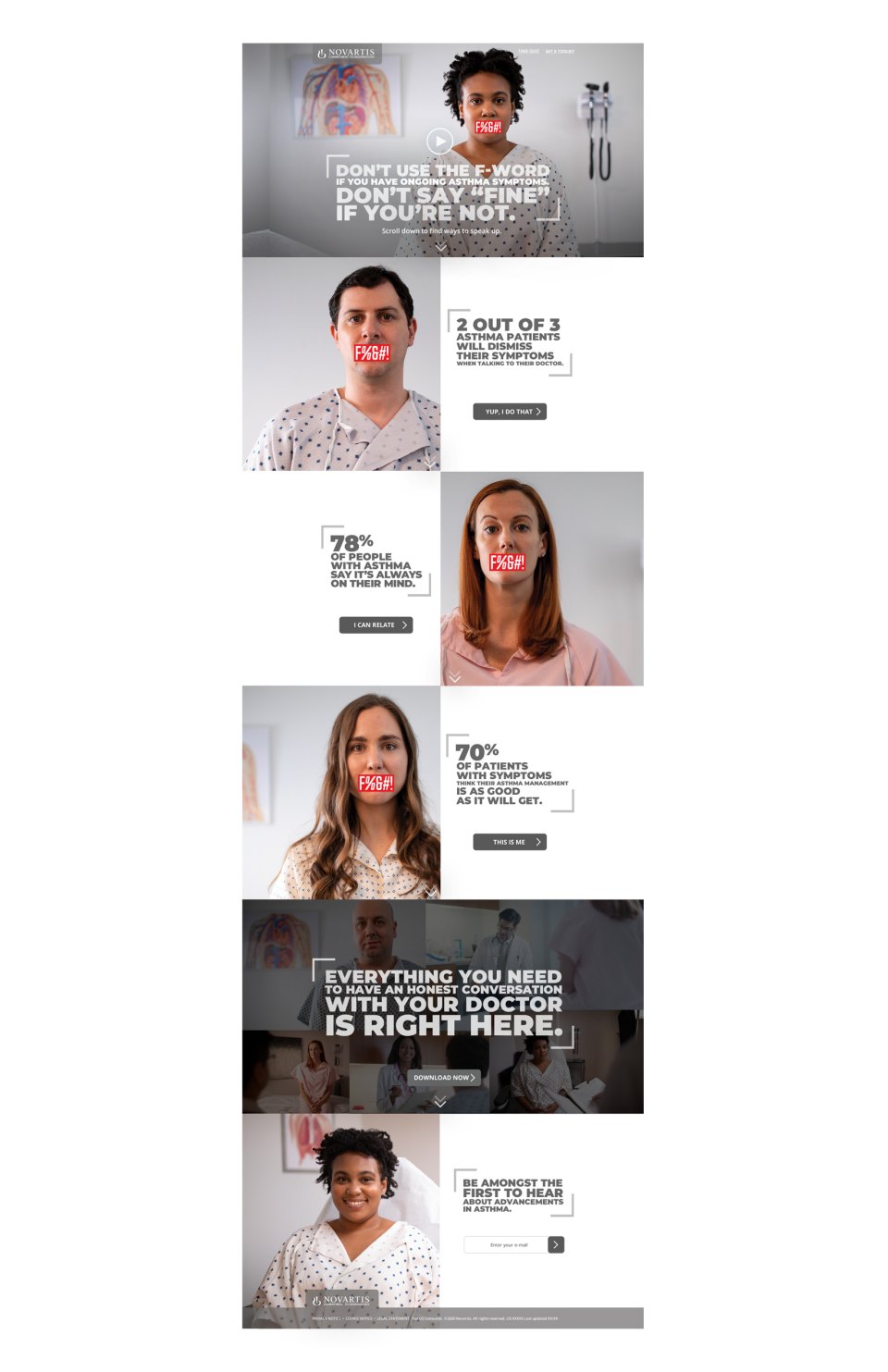 THE CHALLENGE: Get people with severe asthma symptoms to stop using the F-word, “fine,” with their doctors when they’re feeling anything but “fine.” Millions of asthma patients say they’re feeling fine, yet are struggling to breathe, and they don’t have to be with the right treatment. We created these unbranded landing pages and social posts for Novartis to build a buzz around a soon to be released asthma drug called Fevi that helps sufferers breathe a little easier.